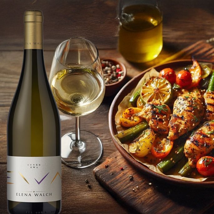 Víno: Elena Walch Selezione EWA Cuvée (Taliansko, Alto Adige). V chuti příjemně svěží a delikátní víno se středně plným tělem a dlouhým závěrem. Skvělý partner ke grilovaným kuřecím prsům.